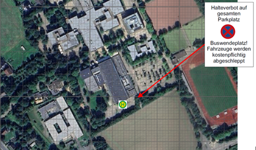 Um das Verkehrsaufkommen auf dem Parkplatz und in der Heldmanstraße zu reduzieren und einen reibungslosen Busverkehr zu ermöglichen, würden uns sehr freuen, wenn möglichst viele Eltern alternative Haltepunkte zum Bringen und Abholen ihrer Kinder nutzen!