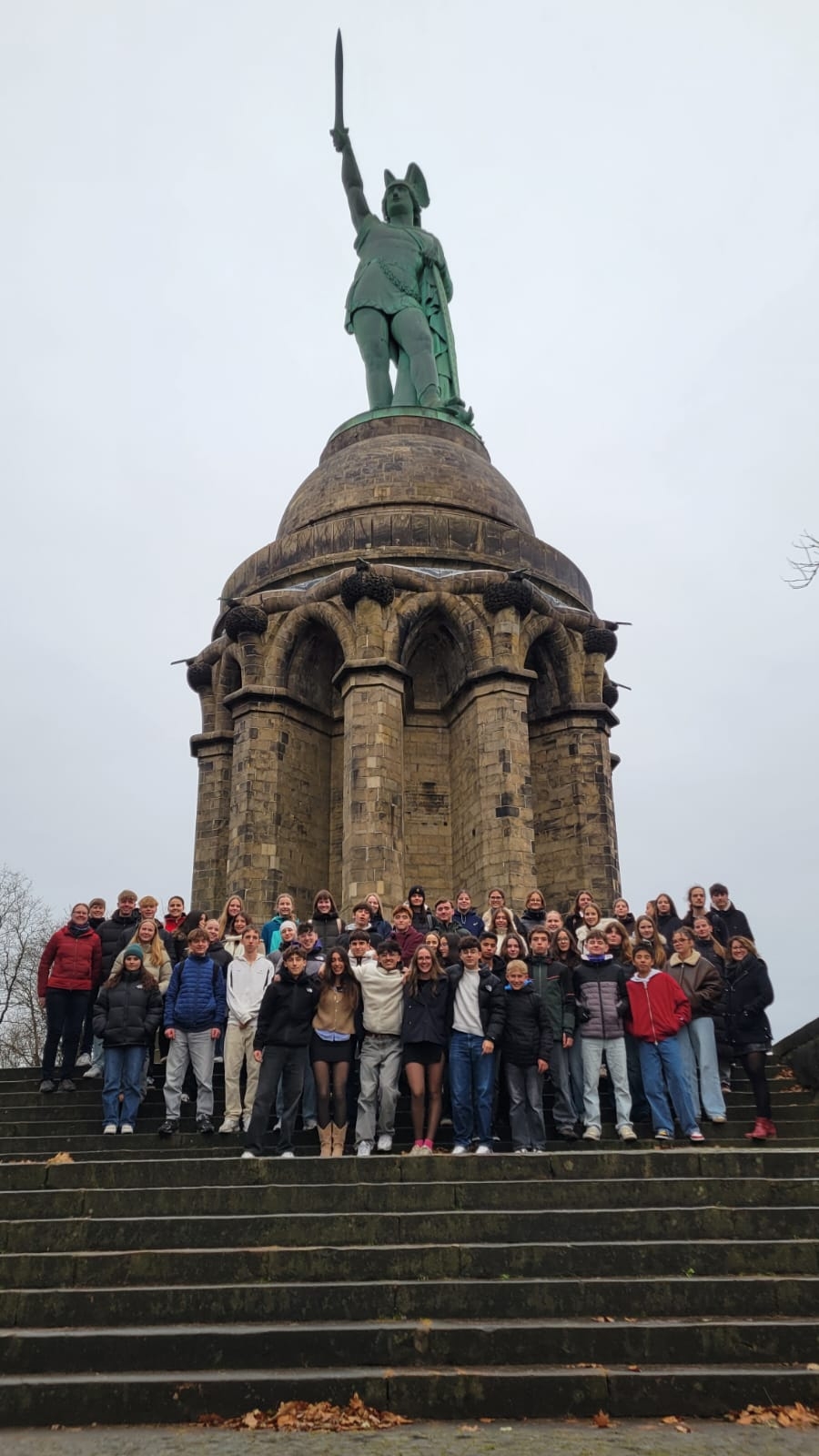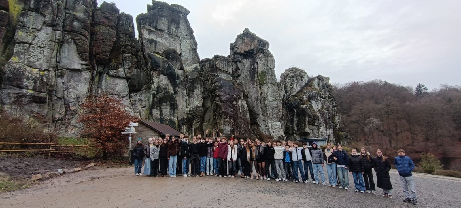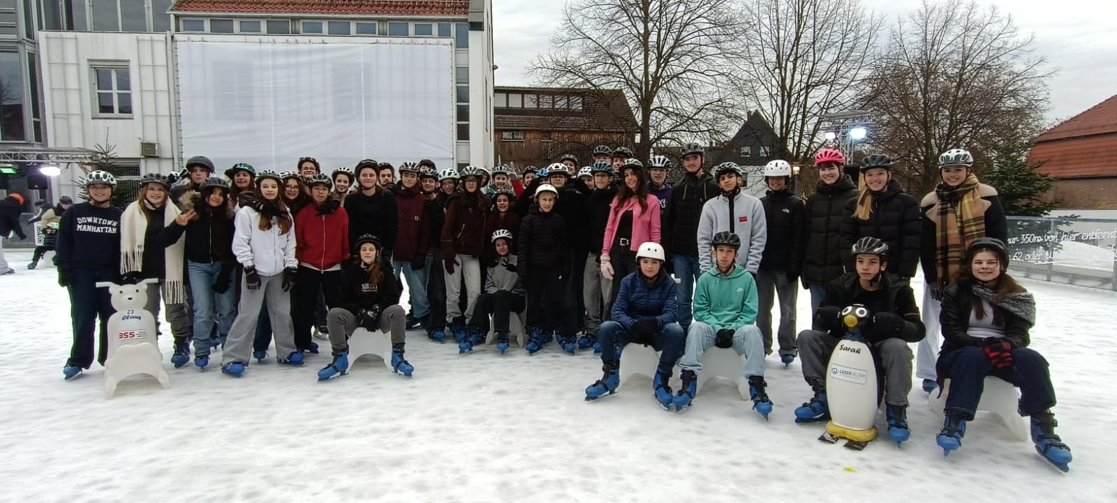 Ein Höhepunkt für viele waren die gemeinsamen Ausflüge: Wanderungen zu den Externsteinen und zum Hermannsdenkmal ermöglichten eindrucksvolle Blicke in die Landschaft und sorgten für zahlreiche gemeinsame Fotos. Sportlich ging es auf der Lemgoer Eisbahn weiter, wo sich deutsche und französische Jugendliche gemeinsam aufs glatte Eis wagten – oft mit viel Gelächter und gegenseitigen Hilfestellungen. Auch ein sportlicher Nachmittag in der Schule durfte nicht fehlen. Für kulturelle Abwechslung sorgte zudem ein Tagesausflug nach Bremen, wo die Schülerinnen und Schüler die berühmten Stadtmusikanten, den Marktplatz und das Schnoorviertel erkundeten.