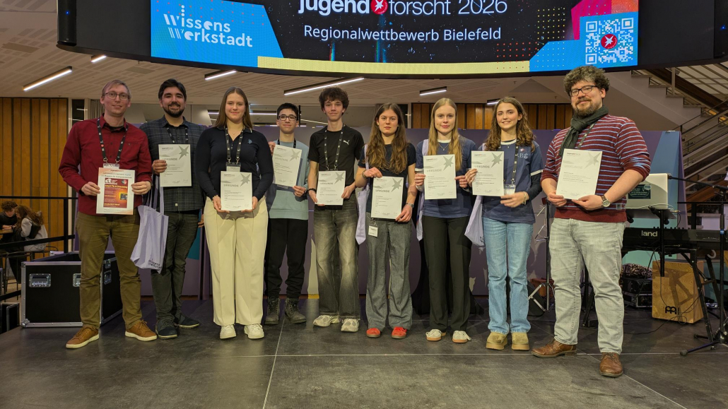 Am Samstag, den 14. Februar 2026, fand die Regionalrunde des Wettbewerbs „Jugend forscht“ zum zweiten Mal in der Wissenswerkstatt Bielefeld statt. Die Schülerinnen und Schüler des Rudolph-Brandes-Gymnasiums waren in diesem Jahr mit sechs Projekten aus den Bereichen „Mathematik/Informatik“, „Chemie“ sowie „Biologie“ vertreten und konnten herausragende Erfolge erzielen und sich zum Teil für die Landesrunde in Essen qualifizieren.