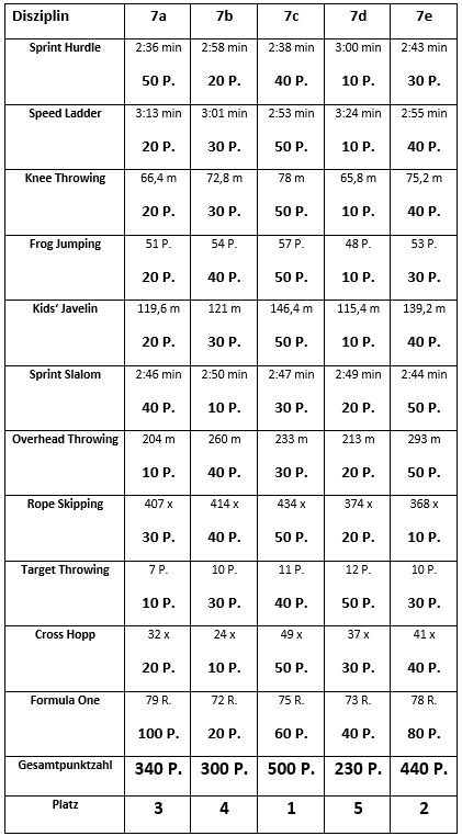Ein ganz herzlicher Dank geht auch an die Sportlehrerinnen und -lehrer der 7. Klassen sowie an alle Sporthelferinnen und -helfer, die mit ihrem Engagement und ihrer Verlässlichkeit ganz entscheidend zum Gelingen dieses Sporttages beigetragen haben.