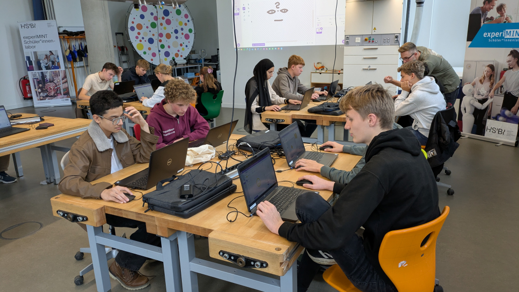 Ein weiteres Highlight war die Exkursion zur Hochschule Bielefeld. Dort nahmen die Schülerinnen und Schüler an einem Workshop zur Funktionsweise von KI-Anwendungen teil und absolvierten zusätzlich einen Lötkurs. So konnten sie praktische Erfahrungen sammeln, um künftig selbst Sensoren an ihren RaspberryPi Zero 2 zu löten.