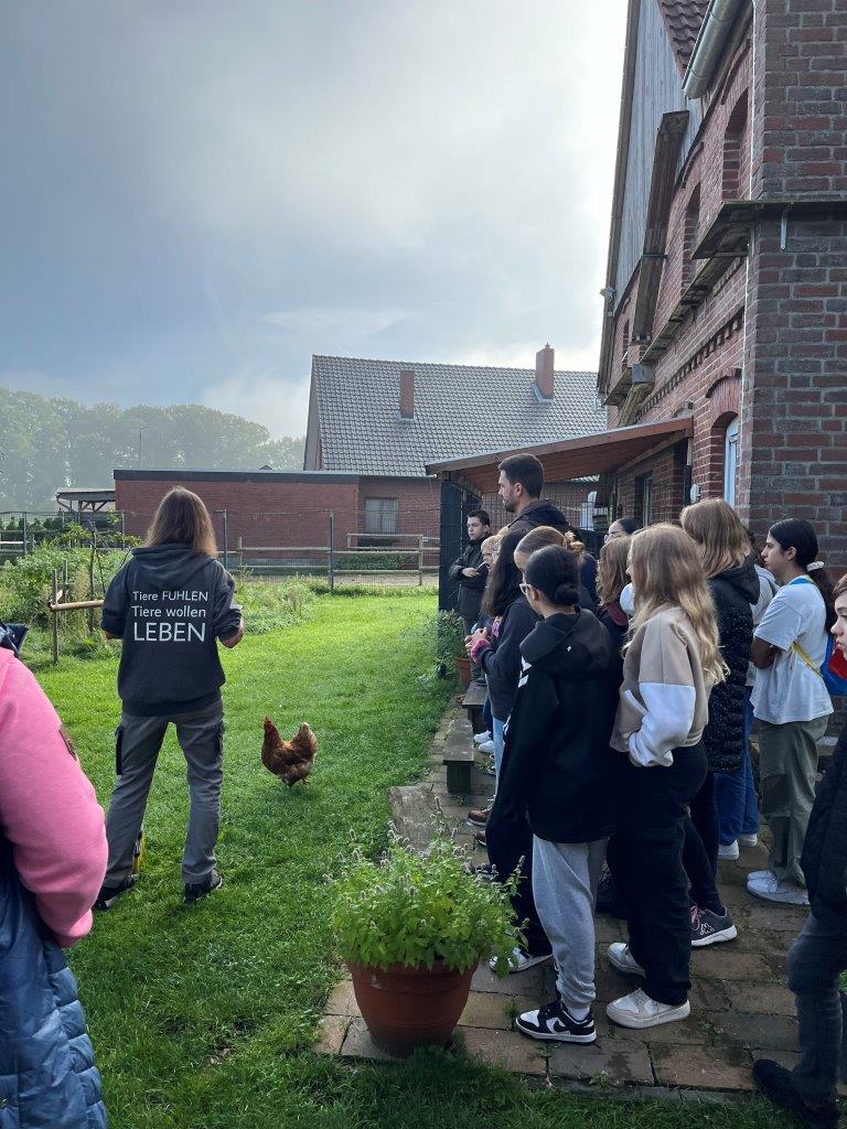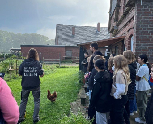 Astrid Reinke, Hofleiterin und Tierärztin, hatte im letzten Halbjahr zwei Philosophiekurse in ihrer Schule besuchte und mit Ihnen zum Thema „Was dürfen wir mit Tieren tun?“ gearbeitet. Im Anschluss kam der Wunsch auf, die Vereinsarbeit von Achtung für Tiere und die Tiere, die in Varensell leben, kennen zu lernen.