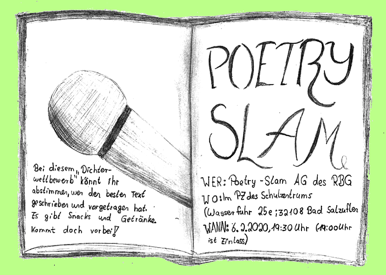Poetry-Slam am 6. Februar 2020Am Donnerstag, 06.02.2020 um 19:30 Uhr findet im PZ der nächste Poetry-Slam der entsprechenden Arbeitsgemeinschaft statt. https://www.rudolph-brandes-gymnasium.de/wp-content/uploads/2016/11/logo_mit_name.jpg 0 0 Hans Jörg Hartmann https://www.rudolph-brandes-gymnasium.de/wp-content/uploads/2016/11/logo_mit_name.jpg Hans Jörg Hartmann2020-01-22 11:49:172020-01-22 11:49:17Poetry-Slam am 6. Februar 2020