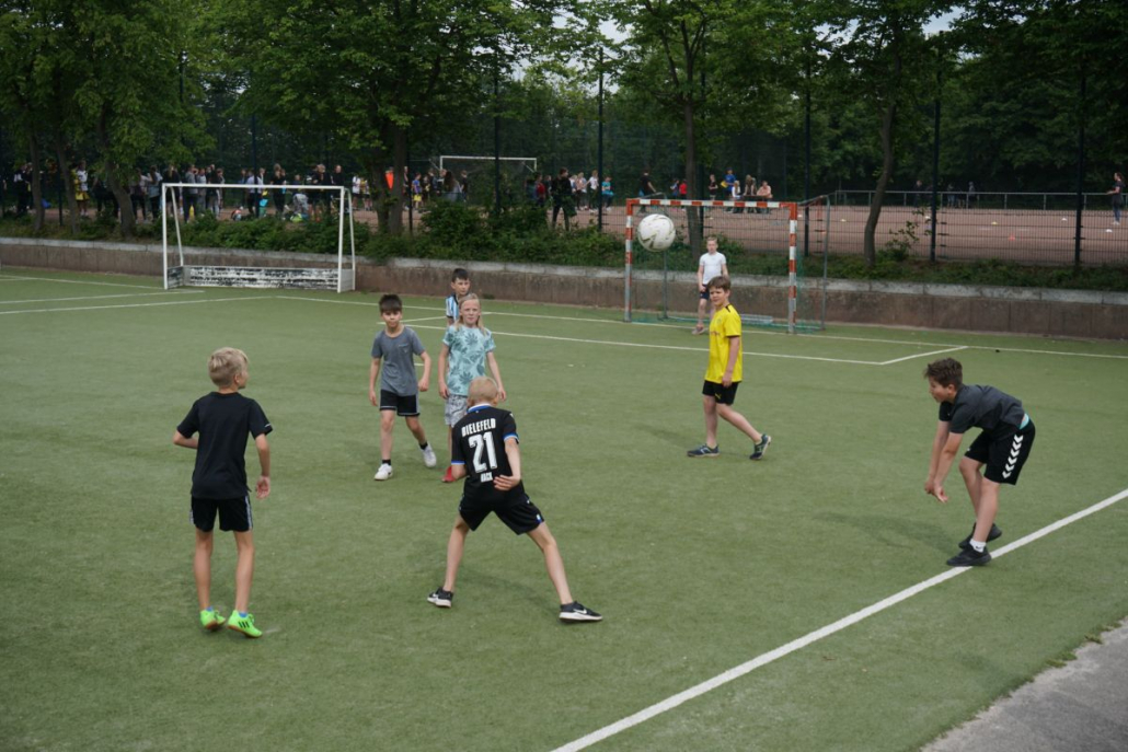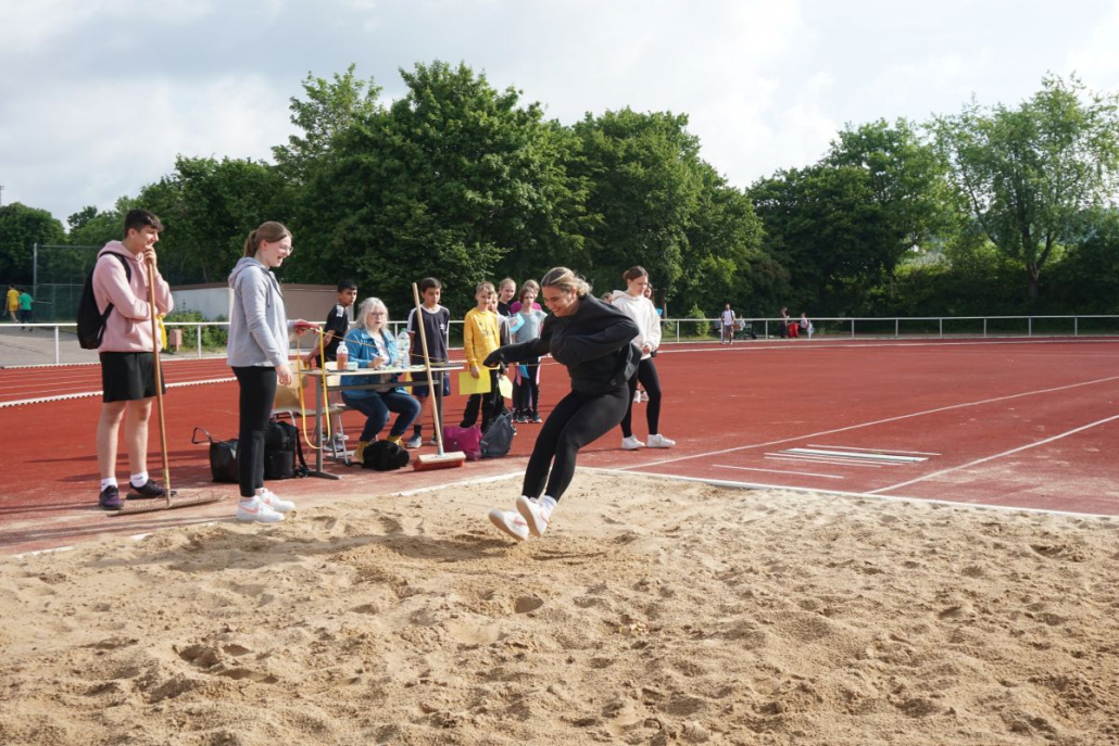 Es ist seit ein paar Jahren gute Tradition, dass das RBG kurz vor den Sommerferien seinen Sportabzeichentag durchführt. So haben alle Schülerinnen und Schüler die Möglichkeit, das deutsche Sportabzeichen zu erwerben. Organisiert wurde der Tag von den Sportlehrerinnen und Sportlehrern, koordiniert wurde er von Frau Jordan. Die Sporthelferinnen und Sporthelfer unserer Schule betreuten und unterstützten die unteren Jahrgänge, die Schulsanis standen bereit, es gab noch das ebenfalls traditionelle Klassen-Fußballturnier – und so wurde es für alle bei herrlichem Sonnenschein ein schöner Tag.